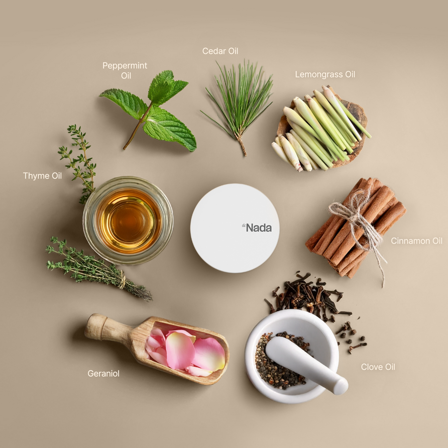 deNada generates a continuous barrier of scent based protection that diffuses naturally. Inside each pod is a structured mineral matrix infused with botanical actives. The formula gradually releases into the surrounding environment, creating conditions insects prefer to avoid, while emitting a light pleasant scent to those around.